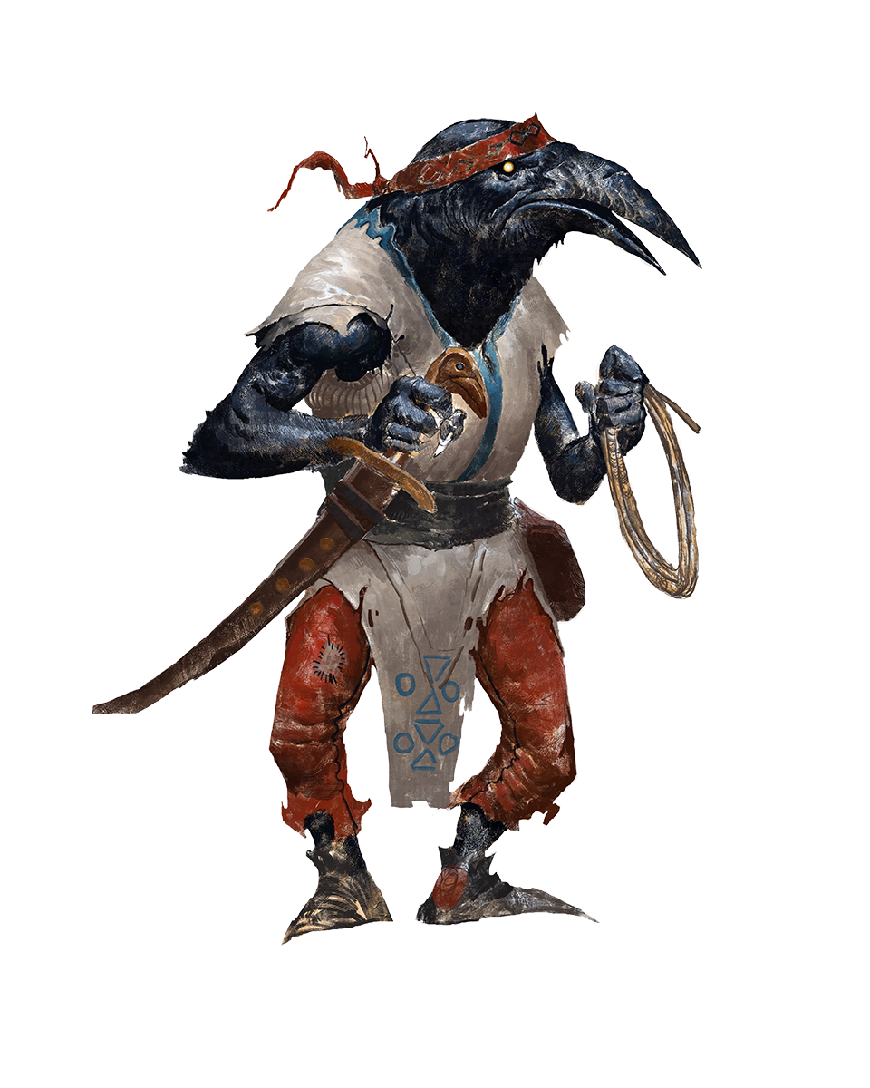 Tengus are a gregarious and resourceful people that have spread far and wide from their ancestral home in Tian Xia, collecting and combining whatever innovations and traditions they happen across with those from their own long history.Tengus are survivalists and conversationalists, equally at home living off the wilderness and finding a niche in dense cities. They accumulate knowledge, tools, and companions, adding them to their collection as they travel.