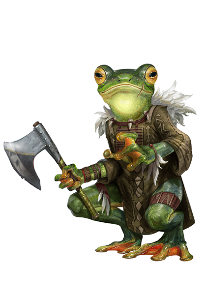 Uncommon Grippli Humanoid Source The Mwangi Expanse pg. 119 2.0Gripplis are a shy and cautious people who generally seek to avoid being drawn into the complicated and dangerous affairs of others. Despite their outlook and small stature, gripplis often take bold and noble action when the situation demands it.Reclusive and canny, gripplis are treetop survivalists who harvest their homes' bounty and defend themselves against terrible threats. Their reliance on cunning and simple tools has led to gripplis being mischaracterized as primitive, yet this overlooks their shaping of the land with hidden orchards and camouflaged causeways that allow gripplis to live in prosperous peace. Gripplis are most likely to emerge from their forest homes to trade, explore, and combat threats that would despoil the world.
