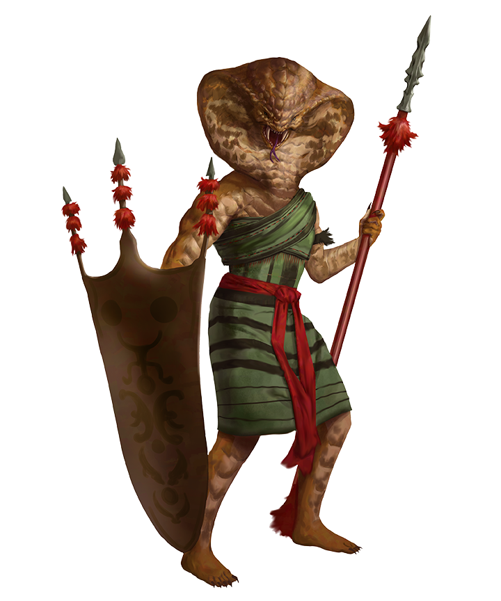 Nagaji originated in the Tian Xia region of Nagajor. Though they have since spread across Golarion to regions such as Vudra and Jalmeray, many of them still carry traditions from their ancestral homeland. Tian and Vudrani concepts of elements, medicine, and spirituality are highly common among nagaji, especially given their tendency of seeing themselves as highly pious beings. Nagaji mostly eschew the human concept of castes, beyond the vague view of a “natural order” that sees nagas as holy guides to mortal nagaji, but they can see the appeal of the concept of karma and the righteousness of fulfilling their proper role in the universe. While they have little physical need for clothes, as they stick to hot and humid environments, nagaji wear them with pride and treat them as decorative elements in the same manner as jewelry.