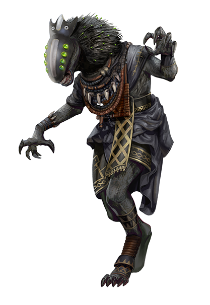 Golomas learn at a young age to be vigilant at all times, observing the environment for any irregularities and then reacting with quick, calculated instinct rather than deliberative action. Other ancestries often perceive golomas to be paranoid and hypervigilant. Golomas are also better at wide-scale observation than observation of specific things—they can easily notice commonalities across large fields but have difficulty remembering what a specific object or creature looked like. This only increases their paranoia, as they have trouble visually distinguishing known friends from potentially hostile foes.