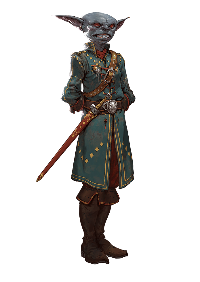 Uncommon Goblin Humanoid Source Character Guide pg. 49 2.0Taller and stronger than their goblin kin, hobgoblins are equals in strength and size to humans, with broad shoulders and long, powerful arms.The reputation of hobgoblins in the Inner Sea region has been upended by Oprak, the hobgoblin nation established recently in the mountains between Nidal and Nirmathas. The Ironfang Legion that stormed through Molthune and Nirmathas only a few years ago made a calculated decision to cease fighting, claim Oprak as a new homeland, and seek peace with its neighbors. Now under strict orders to not start conflicts with other nations, the hobgoblins of Oprak have begun to cautiously investigate Avistan in the spirit of cooperation rather than conquest. Many people, especially those that suffered terrible cruelties under the Ironfang Legion, fear that this is simply a pause in aggression while Oprak gains enough strength to crush its rivals. Others hope these bold soldiers might prove to be allies against the endless hordes of the Whispering Tyrant.