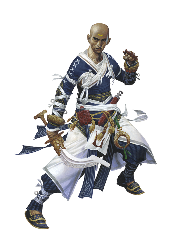 You speed into the fray, dodging or leaping past obstacles with acrobatic maneuvers. You strike opponents in a rapid flurry of attacks, using your bare fists or wielding specialized weapons that you mastered during your monastic training. Stances let you change up your combat style for different situations, and ki abilities allow you to perform mystic feats like healing yourself and soaring through the air.