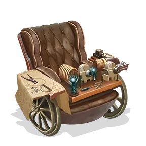 Initially crafted by a gifted inventor who no longer had the use of their legs, the inventor's chair is a traveler's chair. It's a marvel of engineering, utilizing clockwork mechanisms to maneuver about. The chair comes equipped with wheel blades, and portions of its frame contain sterling artisan's tools. The inventor's chair might be a family heirloom or a gift from someone who inherited it. It could instead sit unused in its inventor's abandoned estate, awaiting another user.