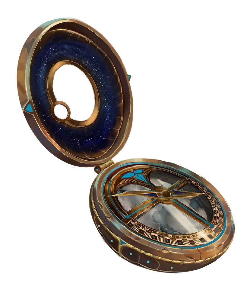 This compact compass repurposes ancient technology to draw fantastic powers from the mysterious magical items called aeon stones. It serves as a badge of office for agents of the Pathfinder Society and as a status symbol among adventurers of any stripe.