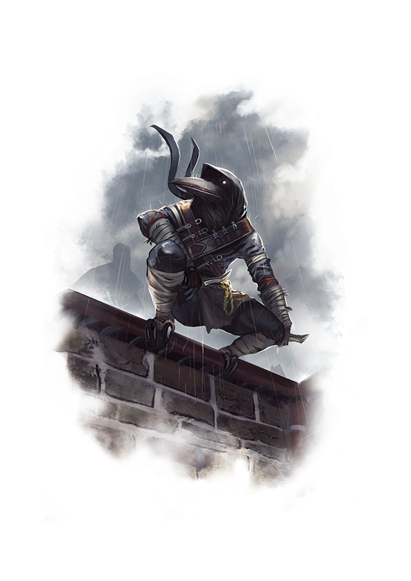 Crow-like humanoids, tengus are a canny and clever people who can be found across all of Golarion. Tengus are used to being minorities and facing suspicion wherever they travel, so by necessity many possess a knack for languages as well as for blades. They live on the fringes of society and tend to flock toward less-than-legal occupations, earning them their reputation for being streetwise and unscrupulous—a label that, in turn, perpetuates the tengus’ oppressive cycle of discrimination and illegitimate work.