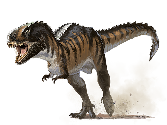 . Other variants of the tyrannosaurs include slightly smaller dinosaurs such as the allosaurus, or even larger dinosaurs like the ravenous giganotosaurus. Even the smallest tyrannosaurs, such as the nanotyrannus, are never smaller than Large in size, yet despite this smaller stature, they are no less ferocious, and those who would assume that a nanotyrannus is "safer" to train would do well to think again!