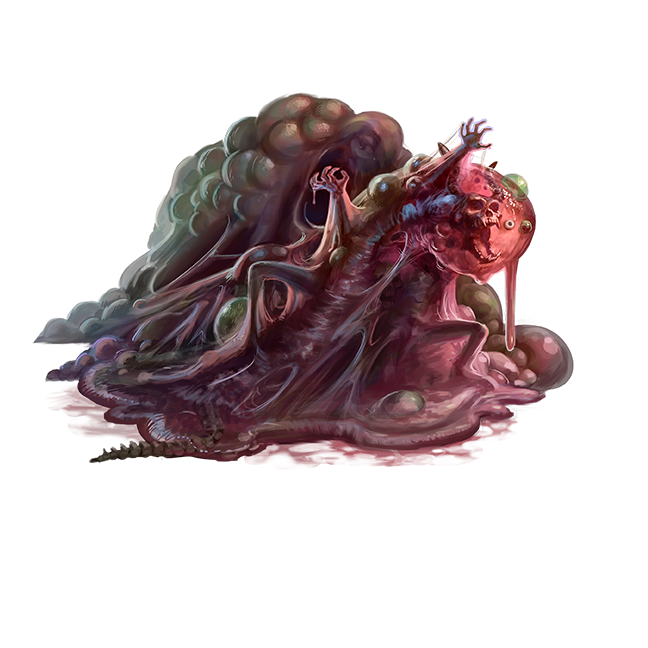 The most basic and common type of shanrigol is called, based on its general shape, a shanrigol heap. These amalgamations of warped flesh and shattered bone establish hunting grounds by accident rather than design, remaining where prey has been plentiful in the past so they can grow larger and larger as they add to their jumbled forms. Only rare fleshwarpers create these abominations willingly, as they ignore all commands and containment to seek out prey.