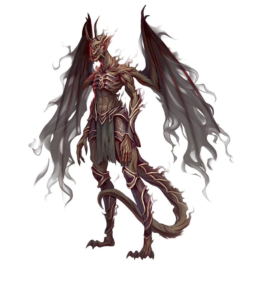 Vanyvers are large, humanoid bats shaped from void and shadowstuff, their red eyes glowing like tiny stars in an otherwise lightless night. Though powerful, they're the least of the darvakkas, and the most likely to submit to a master, either another of their kind or a mortal with a reputation for being especially murderous and destructive. Vanyvers agree to follow their masters as a temporary means of maximizing the death and destruction they can enact but will quickly turn on any master they feel falters in this goal.