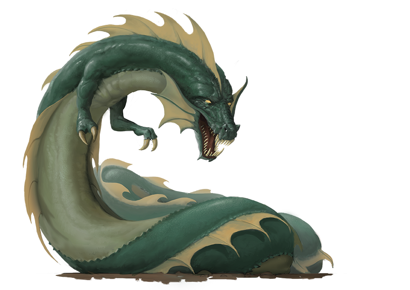 Tatzlwyrms resemble human-sized snakes with two arms and a dragon's head. Distant relatives of true dragons, tatzlwyrms possess only a meager level of intelligence. They can speak Draconic (with a thick, hissing accent), but their ability to reason is limited and they can't use magic. They do possess a level of cunning, however, and some have been known to build rudimentary traps and even lairs. They are not treasure-hoarders, though, so don't expect to find a tatzlwyrm sitting atop a bed of coins.