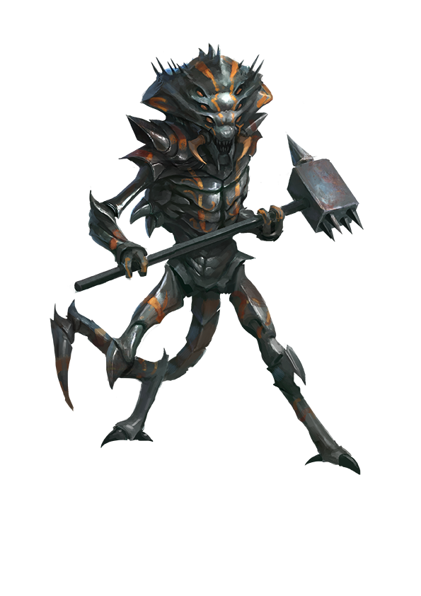 These gremlins are covered head-to-toe by a crustacean-like exoskeleton that clacks and rattles whenever a vexgit moves. They delight in sabotaging the works of other creatures, often turning these works into dangerous traps. An individual vexgit might jam a door lock, loosen the wheels on a carriage, or remove nails from a boat hull. Buildings infested by vexgits become filled with traps like portcullises descending suddenly, water pipes exploding violently, and clock towers disgorging an avalanches of gears.