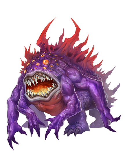 Whatever the truth, olethrodaemons are real, and their existence is terrifying enough to instill paralyzing existential dread. With dozens of unblinking glowing eyes above a drooling maw, two sets of four muscled limbs, and countless horns, olethrodaemons resemble no other creature known to mortalkind.