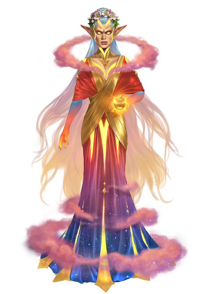 Hesperid queens rule over isolated regions soaked in the light of sunset. They guard countless treasures and secrets, though for those who approach them with respect and offer an intriguing bargain, they're willing to part with knowledge or items beyond those secrets or valuables they've sworn to keep to themselves.
