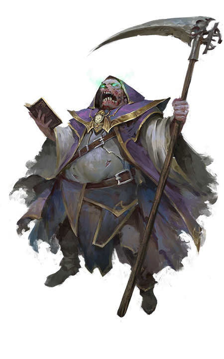 Krant has created enough individual zombies to form shambler troops, which are effectively 4th-level creatures. Rather than creating them directly, he needed to train weaker zombies to work as troops. Shamble Forth! [one-action] (concentrate, divine, necromancy); Frequency once per round; Effect Each zombie controlled by Krant Strides 5 feet (or Burrows, Climbs, Flies, or Swims 5 feet if it has the corresponding movement type). Whispering Scythe [reaction] (divine, necromancy); Trigger An undead controlled by Krant and within 20 feet of him is destroyed; Requirements Krant is holding his scythe; Effect Krant draws the creature's soul into his scythe. The next time he makes a scythe Strike, the soul is released and the Strike deals an extra 1d6 negative damage. The scythe can hold only one soul at a time.